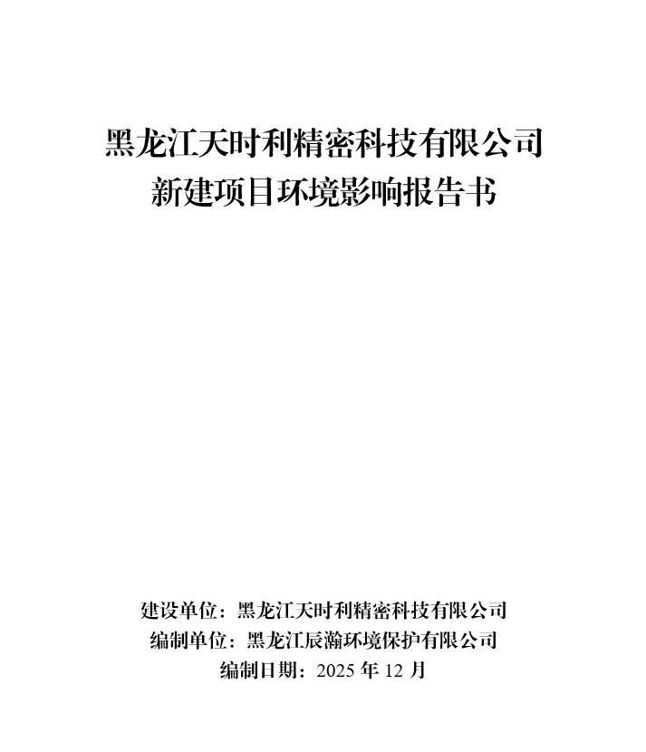 黑龍江天時(shí)利精密科技有限公司新建項(xiàng)目環(huán)境影響報(bào)告書(shū)及公眾參與說(shuō)明